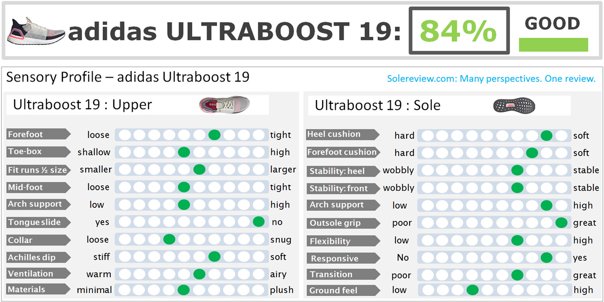 相較於前一代(19),新增了一項技術”Tailored Fiber Placement”,簡單的來說就是在特定位置有不同的編織密度, 可以將腳固定在位置上並且阻止可能腳在移動中造成的位移, 國外網站可能因為這兩鞋款差異不大的狀況下, 目前只有19的評比表如下圖:
