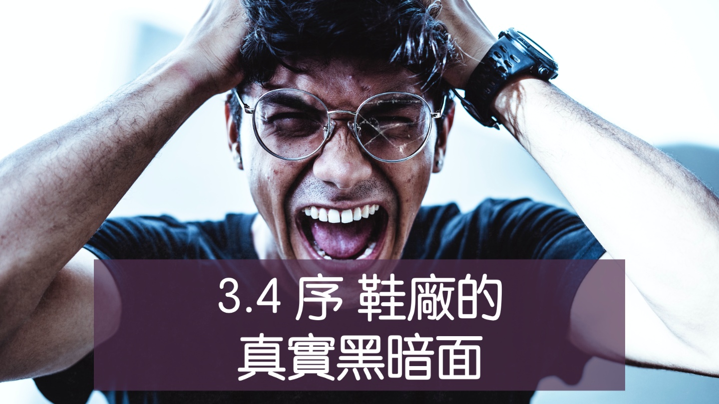 3.4 序 鞋廠真實黑暗面與如何應對 2021/08/14 15:01 share file_copy複製連結 code嵌入 more_horiz report_problem 檢舉此貼文 labelTags: 三小時學會一年的製鞋知識 第一堂製鞋線上課程 鞋廠工作 外派鞋業 海外外派 高效學習 黑暗面 心理準備 進入鞋業 新南向 製鞋課 今天是星期六,經過了昨天的 13號星期五以後就來八卦一下,實際上我們在工廠是怎麼工作的,希望說完了這一章節以後你們不會對鞋業失去信心才好,哈哈.畢竟之前已經跟你說過了光鮮亮麗的一面,現在當然要讓你知道黑暗面!才不會誤導了你的選擇.一進來就幻想破滅!快一起加入我們的課程吧! unfold_more 顯示部份資訊 回 覆