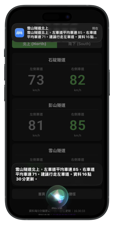 國五東西軍發表啦! 2026/01/30 02:09 share file_copy複製連結 code嵌入 more_horiz report_problem 檢舉此貼文 國五東西軍發表啦!https://www.mis.cat/n5我們透過取得即時車道流量,提供進隧道前的參考。考量行車安全,我們使用iOS內建捷徑語音朗讀,不須分神觀看螢幕畫面。服務完全免費,請贊助我們以持續維護及更新。 unfold_more 顯示部份資訊 回 覆