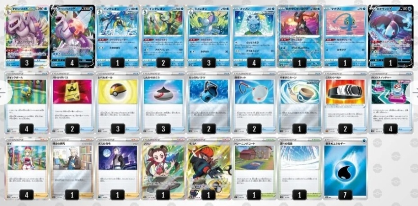 我參考了推特等牌表,以交錯機為核心試組了看看。霓虹魚V可以在後攻一直接透過珠貝來抓取物品卡VIP參加證,在你不使用連連召喚的前提下也能做出後手展開。珠貝的另一個好處也很強,可以抓取任意水系寶可夢。如果覺得水能還是抽不太到的話,也許可以再增加一枚水桶。為了增加帕路的耐久度,多放大護符也是可以的。