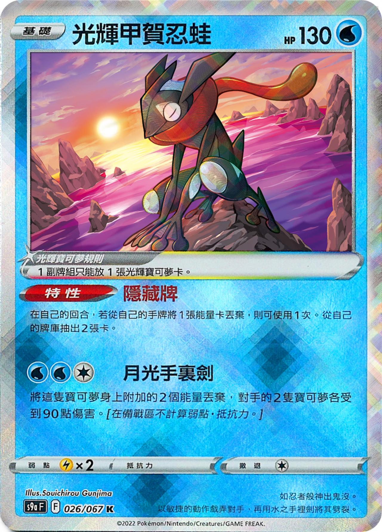 如果對方是千面軸,而且如果沒有瑪納霏在後台的話,也可以賦予給甲賀忍蛙,來輕鬆獲取獎勵卡優勢與檯面資源優勢。請務必有意識地準備這個play。